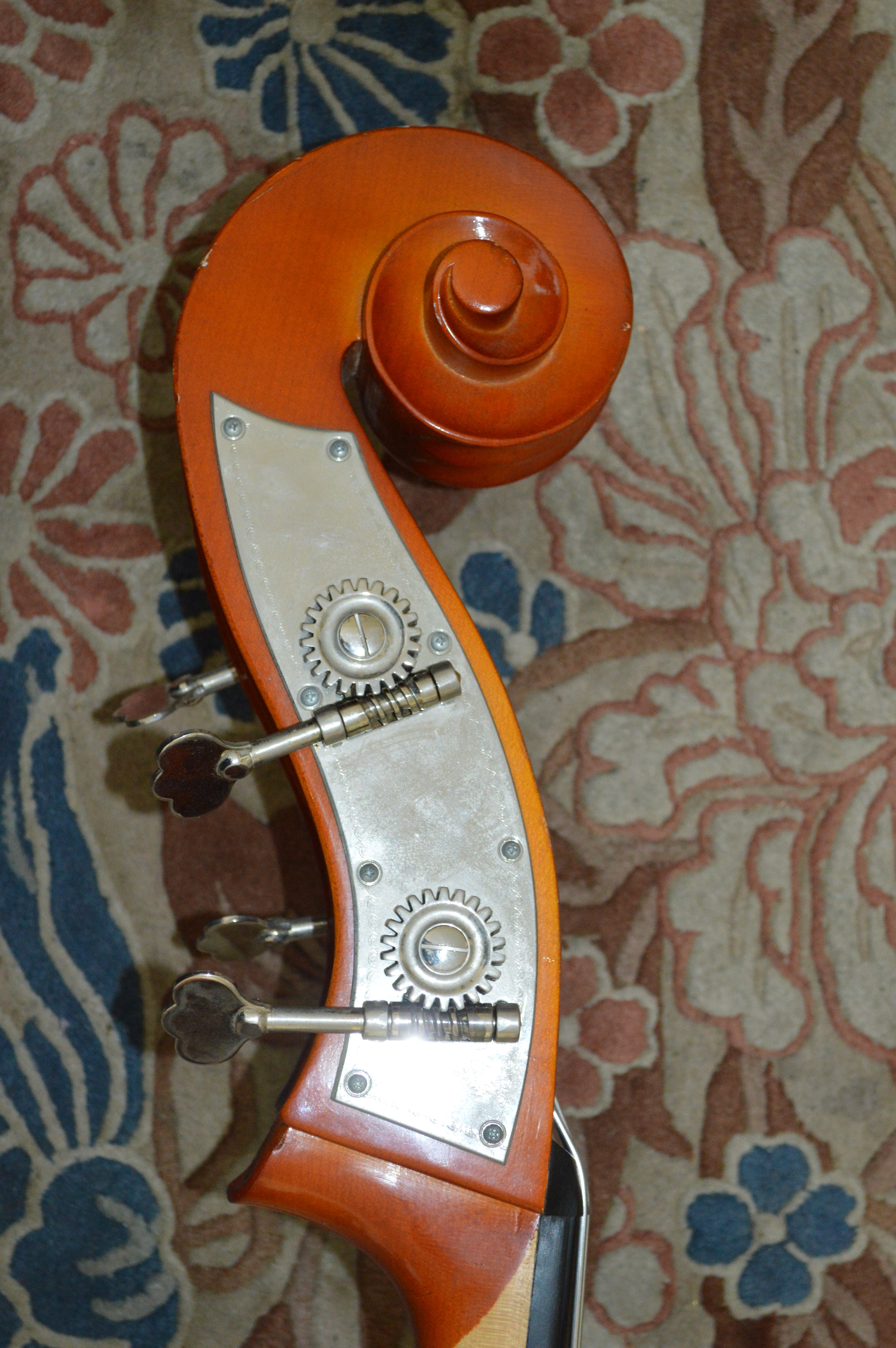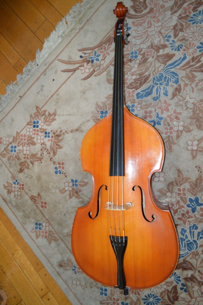 This Roma hybrid ( a plywood bass, but with a hand carved quality spruce top ) double bass has a nice tone for the level of craftsmanship. This was the first double bass I started with. I won the San Francisco Symphony Youth Orchestra audition when I was in high school on this bass. A former student of mine also won his SFSYO audition on this bass. Over the last two decades this bass has been played by current and former students, which helps keep the sound alive*.